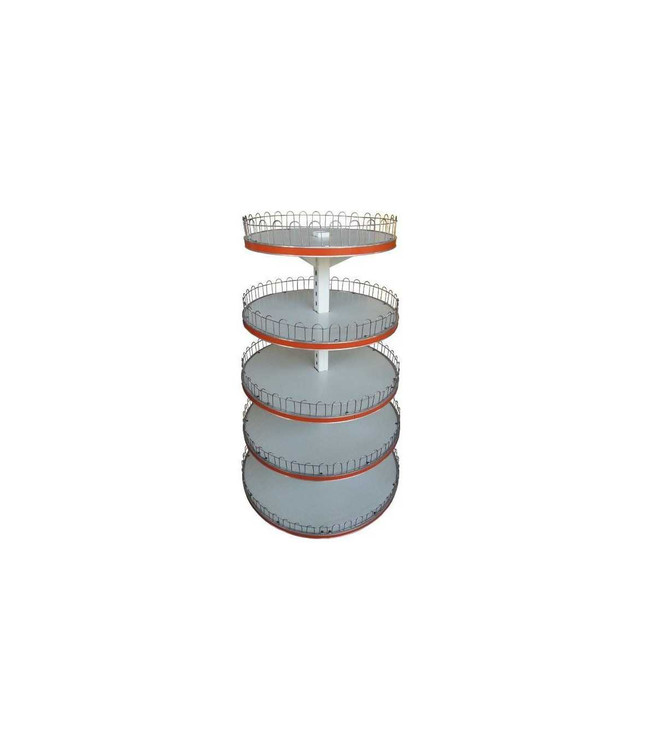 قفسه گرد طرح کیک دارای نرده محافظ جهت جلوگیری از ریزش کالا می باشد .