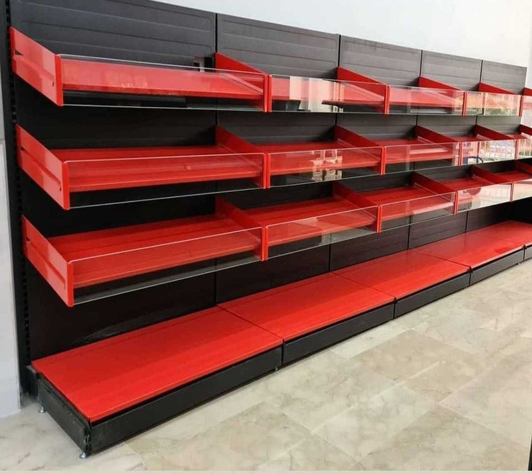 ارتفاع قفسه فلزی میوه فروشگاهی 1.80 متر، دارای 3 طبقه باعمق 40 سانتیمتر است.