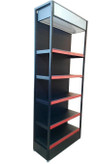 ارتفاع شلف کنار دیوار فروشگاهی ، 2.5 متر و با 5 طبقه و یک تاج است.