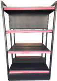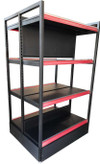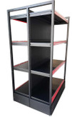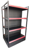 ارتفاع هر شلف دوطرفه فروشگاهی کارینا ، 1.60 متر ، طول 1 متر و عرض 80 سانتی متر است.